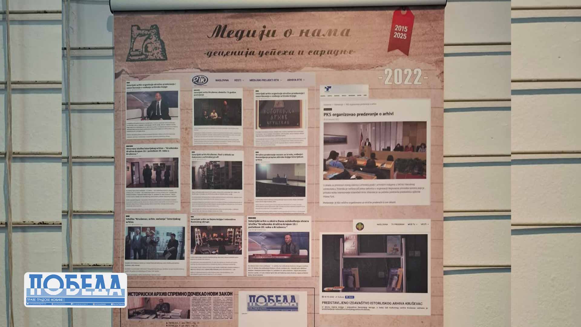 Izložba donosi pregled medijskih objava koje prate rad Istorijskog arhiva Kruševac u prethodnih deset godina, ukazujući na kontinuitet stručnog delovanja, uspešnu saradnju sa medijima i značaj Arhiva u očuvanju kulturno-istorijskog nasleđa.