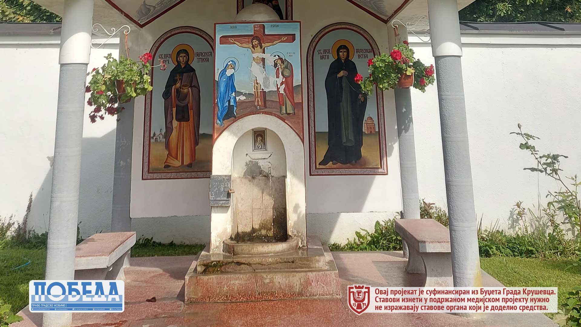 Glavna crkva posvećena je Vaznesenju Gospodnjem . U severnom krilu konaka nalazi se kapela posvećena Svetom Savi dok se na izvoru nalazi kapela posvećena Svetom caru Konstantinu i carici Jeleni.