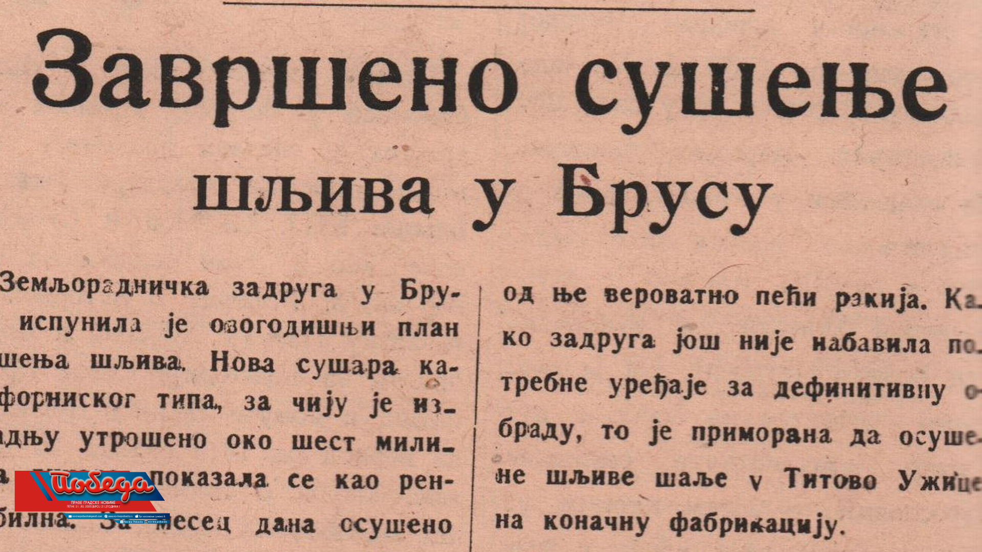 SUŠENJE ŠLJIVA U BRUSU 1959. GODINE